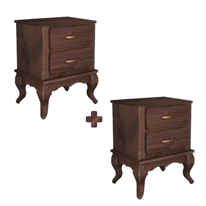 Kit 2 Mesas De Cabeceira 2 Gavetas Rústica Imbuia D802 Denk