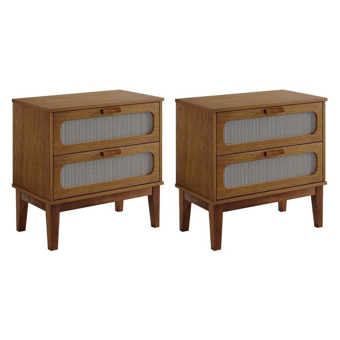 Kit 2 Mesas de Cabeceira 2 Gavetas Santorini Amêndoa 60 Cm com Tela Indiana - Bege