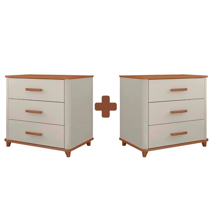 Kit 2 Mesas De Cabeceira 3 Gavetas Freijó Off White Maitê Fabri Móveis Freijo/Off-White