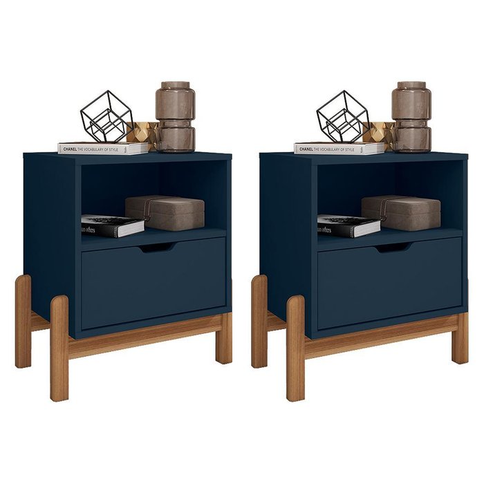 Kit 2 Mesas de Cabeceira Antares 1 Gaveta Azul Cobalto - Casa D