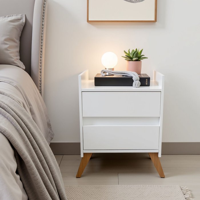 A Mesa de Cabeceira com 2 Gavetas Criado Retrô é a escolha ideal para quem busca organização, praticidade e um toque de charme retrô no quarto. Funcional e elegante, ela complementa a decoração e facilita a rotina, mantendo tudo o que você precisa sempre ao alcance.