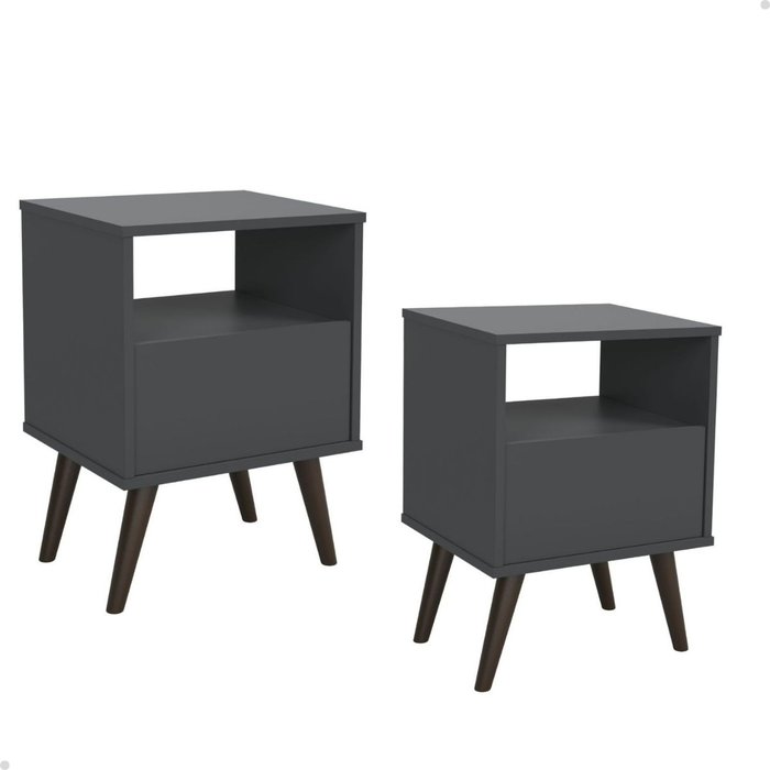 Kit 2 Mesas de Cabeceira Retrô 1 Gav. - Mod.1227 Cor:cinza