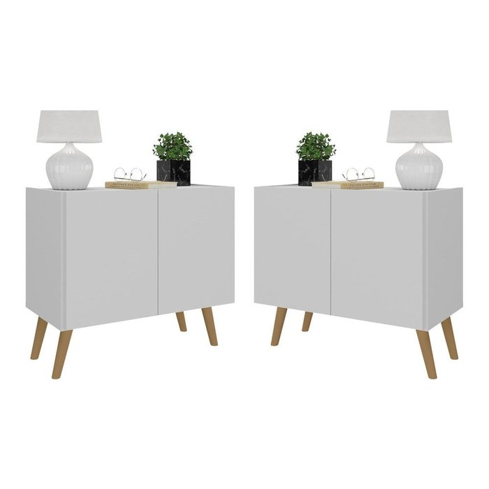 Kit 2 Mesas de Cabeceira Retrô 2 Portas Multimóveis Mp4138 Branco/natural