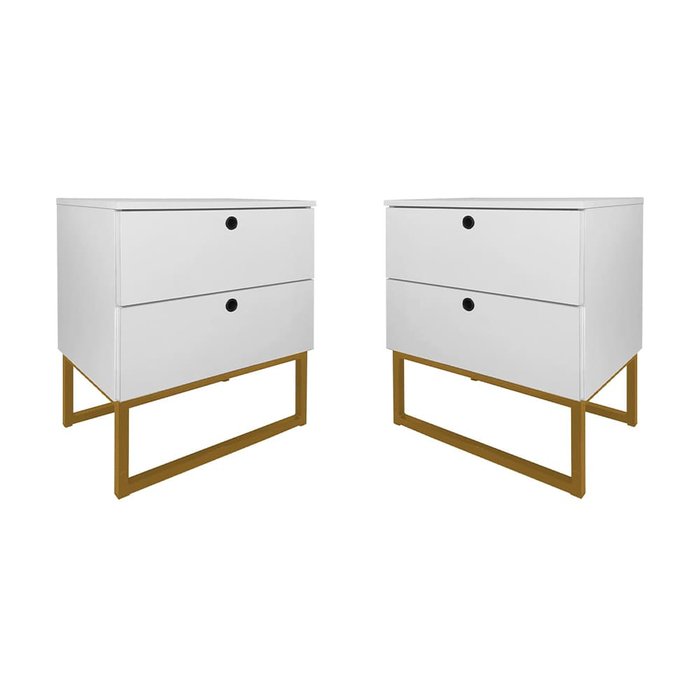 Kit 2 Mesas de Cabeceira Slim Branco 2 Gavetas Base Metálica Dourada - Belliv Decor