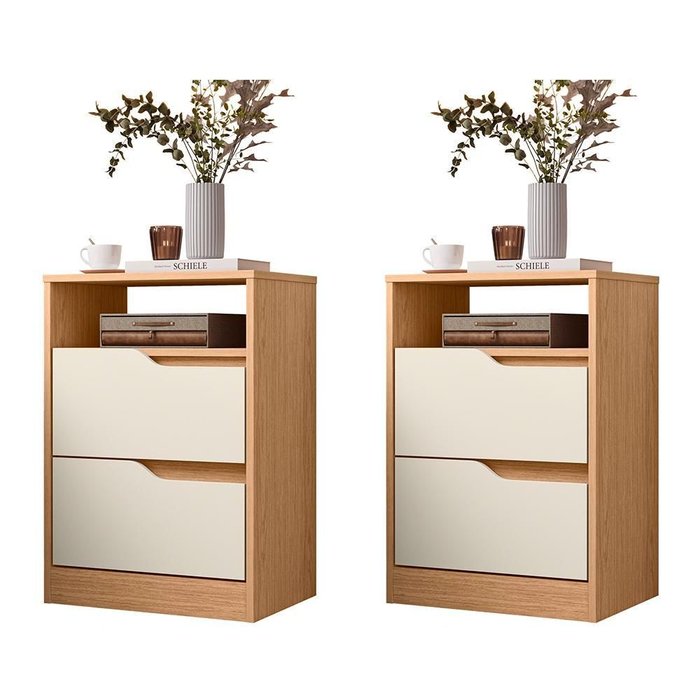 Kit 2 Mesas de Cabeceira Sole 2 Gavetas Flex Freijó/off White - Móveis Albatroz