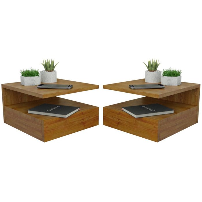 Kit 2 Mesas de Cabeceira Suspensa 1 Gaveta Inferior Freijó