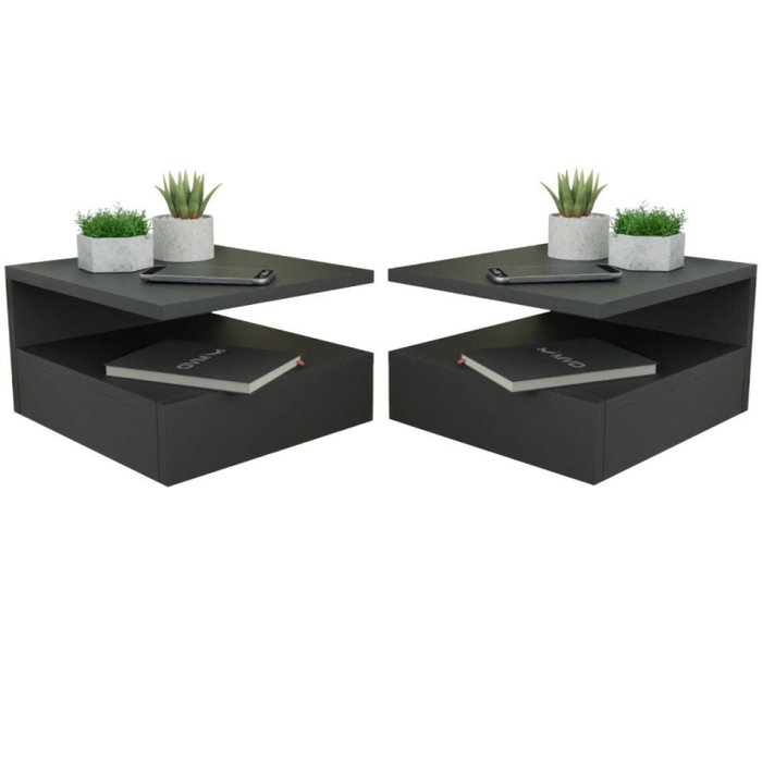 Kit 2 Mesas de Cabeceira Suspensa 1 Gaveta Inferior Preto