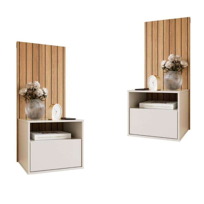 Kit 2 Mesas de Cabeceira Suspensa Efeito Ripado Cross Freijó - Movelove