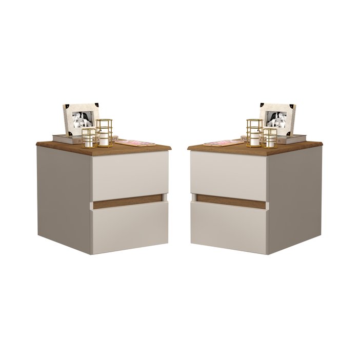 Kit 2 Mesas de Cabeceira Suspensa Mini Tóquio 30: Off White / Freijó
