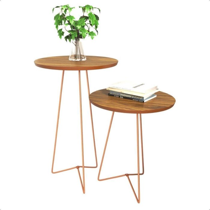 Kit 2 Mesas de Canto Industrial Pés em Metal Rose Gold Cor:freijó