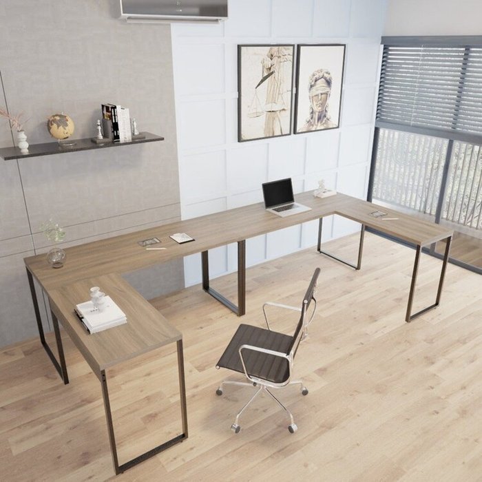 Kit 2 Mesas de Escritório em L Estilo Industrial 1,50mx1,50m Kuadra