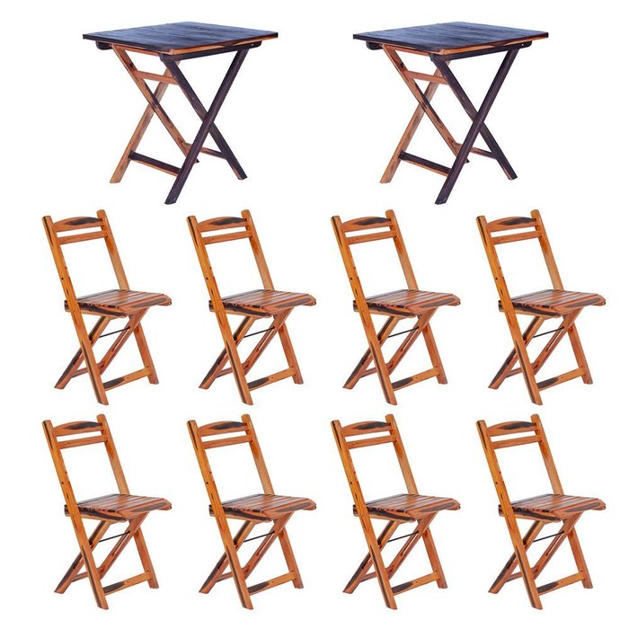 Kit 2 Mesas Dobráveis com 8 Cadeiras 100% Madeira Maciça Ypê Cerejeira