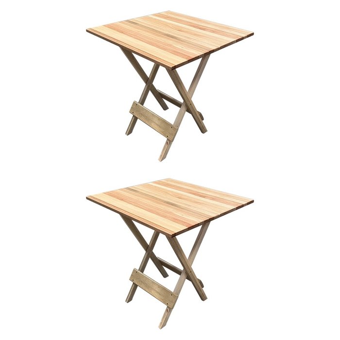 Kit 2 Mesas Dobrável 70x70cm de Madeira Maciça Eucalipto