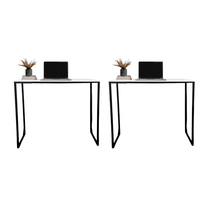 Kit 2 Mesas para Pc Computador Escrivaninha Gamer Mesinha Notebook Tampo Branco, Base Preto