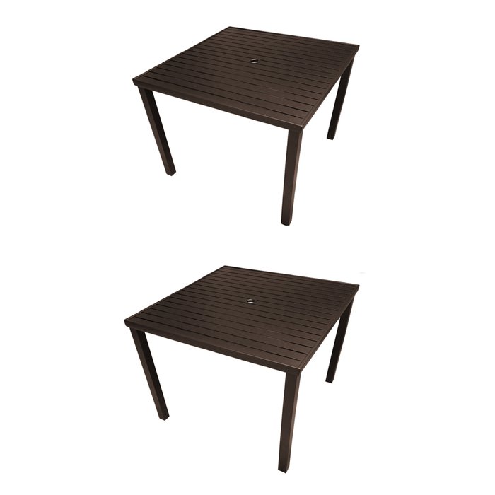 Kit 2 Mesas Tampo Ripado Quadrada 0.80x0.80m Alumínio Marrom