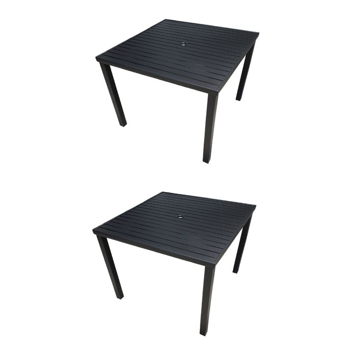 Kit 2 Mesas Tampo Ripado Quadrada 1.00x1.00m Alumínio Preta