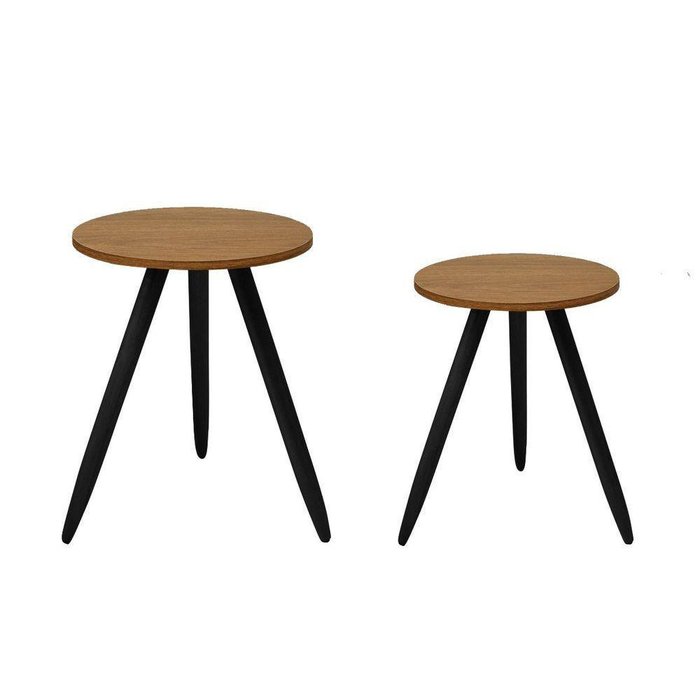 Kit 2 Mesinha De Canto Decoração Louro Freijó Pé Preto Sala