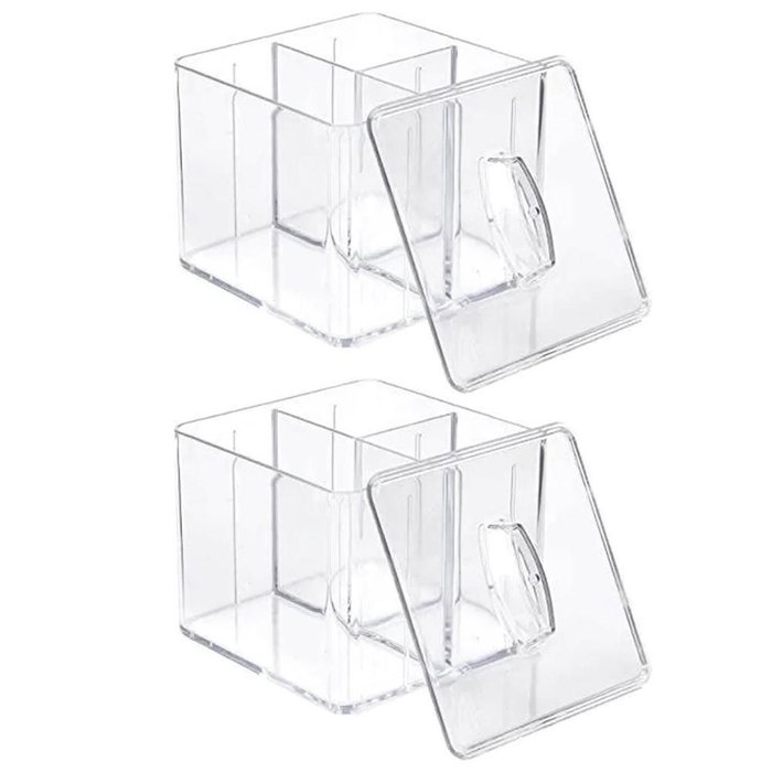 Kit 2 Organizadores de Maquiagens com Tampa 3 Divisórias Dello Acrílico Cristal Porta Cotonete Transparente