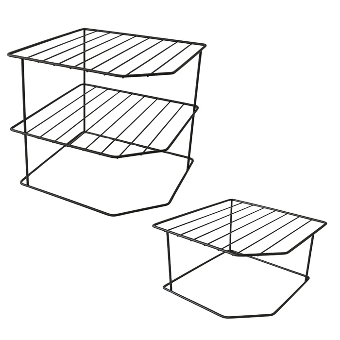Kit 2 Organizadores de Prato Aramado 2 e 3 Andares Preto Preto