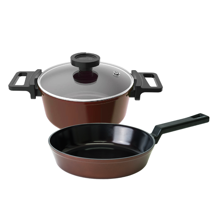Kit 2 Panelas 20cm - Indução, Neoflam, Reverse, cor Marrom rosa, Revestimento cerâmico Interno & Ext
