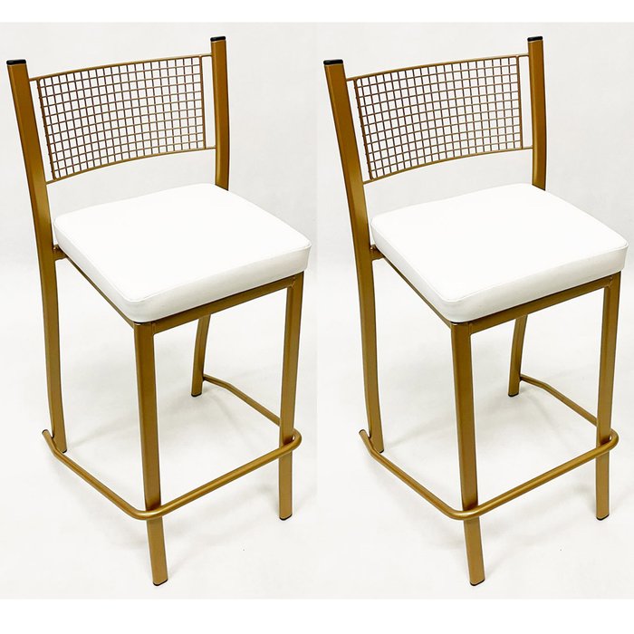 Kit 2 Peças Banqueta Média para Bancada Empilhável cor Dourado Fosco assento branco Altura 65cm