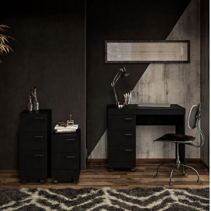 Kit 2 Peças com Escrivaninha 3 Gavetas e 2 Gaveteiros Osaka Preto