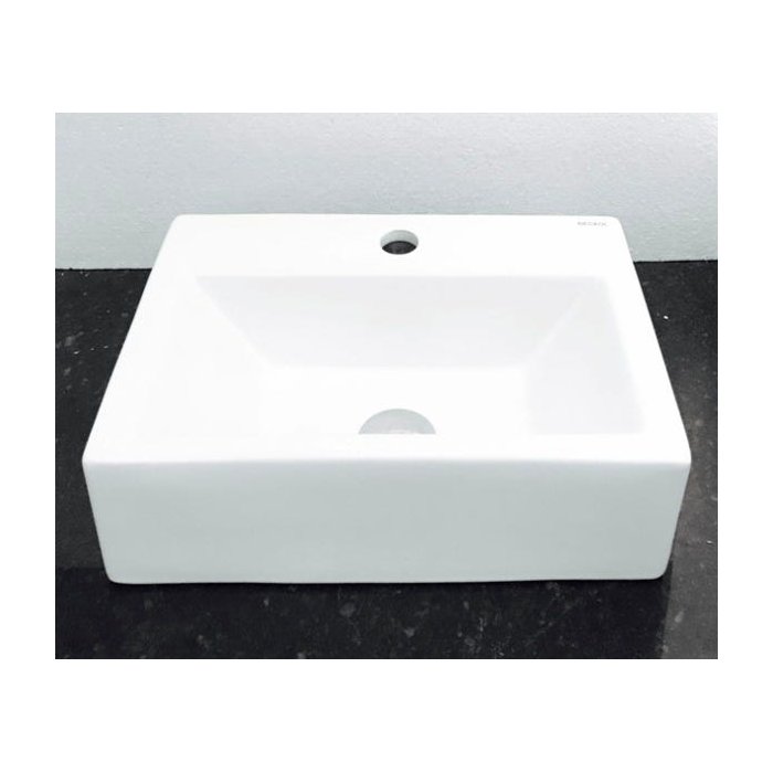 Dimensões: 42,5 x 30 x 13cm material: cerâmica. kit 2 peças com cuba de louça retangular com apoio para torneira e válvula click cromada para lavatórios