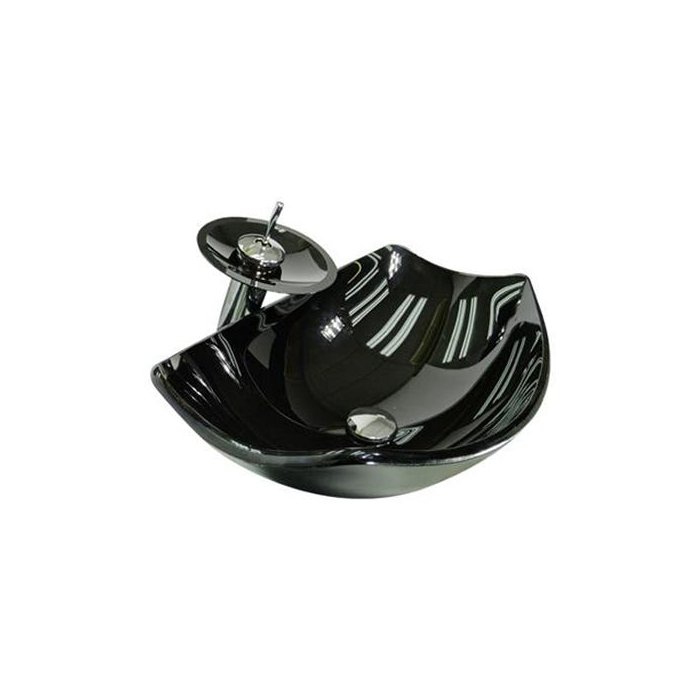 Dimensões: 52,5 x 37 x 15,5cm espessura: 12mm material: vidro temperado. kit 2 peças com cuba de vidro na cor preta, foma chanfrada canoa (oval) e válvula click cromada para lavatórios
