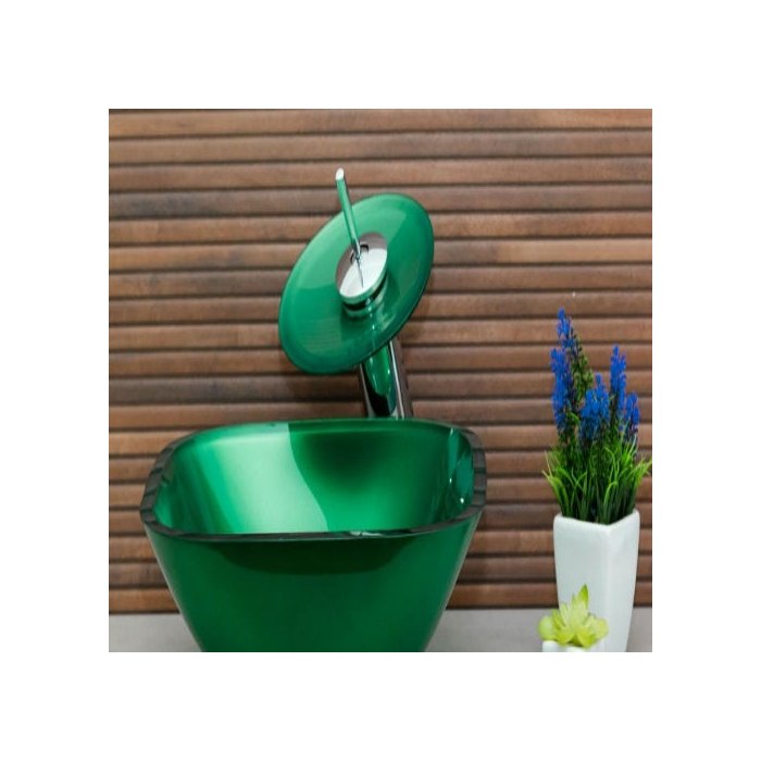 Kit 2 peças cuba de vidro quadrada verde + válvula