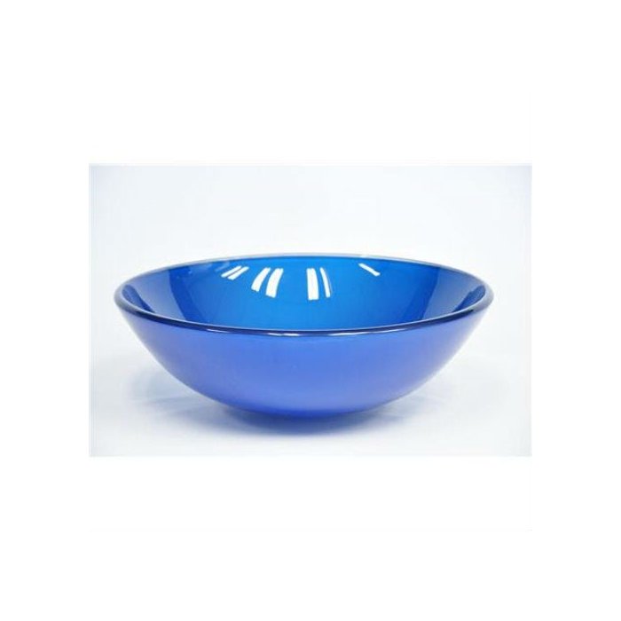 Dimensão : 41,5 x 13,5 , cor : azul , espessura : 12 mm , material : vidro temperado , Kit 2 peças cuba de vidro redonda azul , válvula