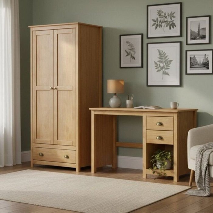 Kit 2 Peças Escrivaninha C/ 2 Gavetas e Armário 2 Portas 100% Madeira Maciça - LinhaTopázio