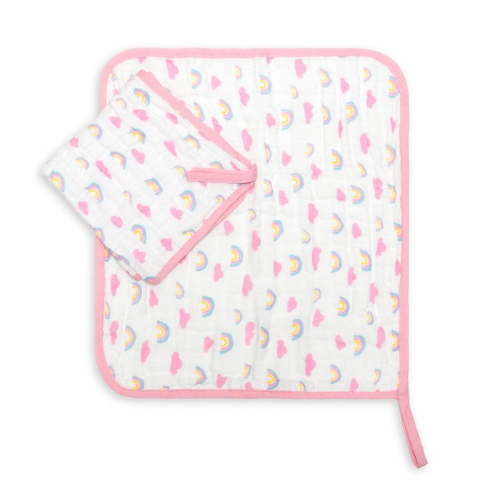 Kit 2 Peças Fralda de Boca Babete Paninho Soft Premium Bebê Hipoalergênico Arco-Íris Rosa