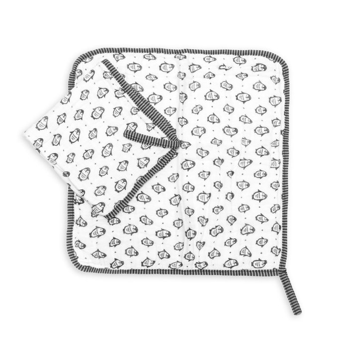 Kit 2 Peças Fralda de Boca Babete Paninho Soft Premium Bebê Hipoalergênico Pinguim Branco e Preto