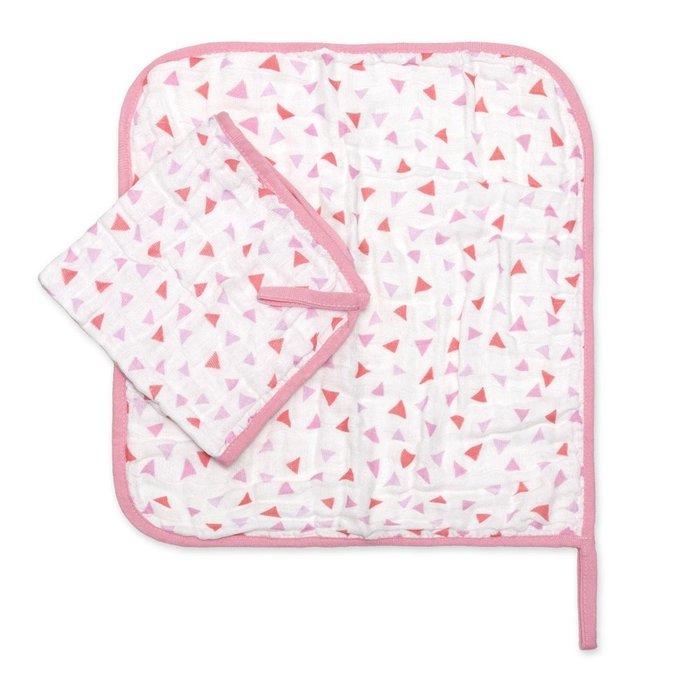 Kit 2 Peças Fralda de Boca Babete Paninho Soft Premium Bebê Hipoalergênico Triângulos Rosa