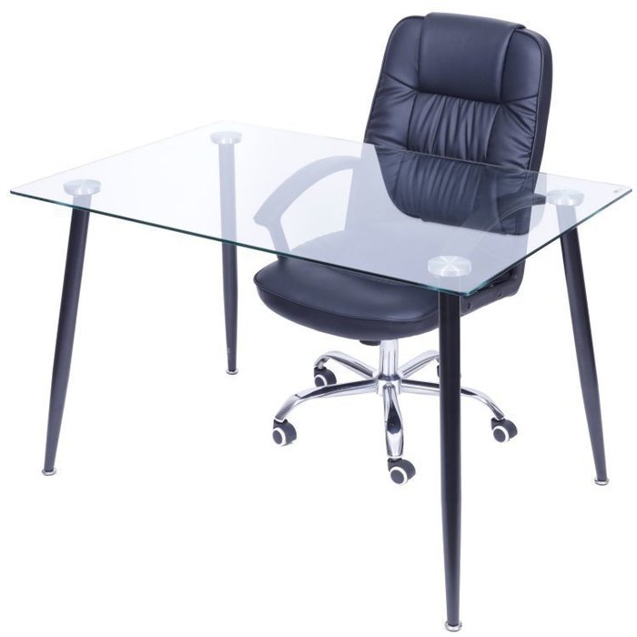 Kit 2 Peças Mesa Taurus Vidro e Cadeira Presidente Boston Espresso Móveis Preto