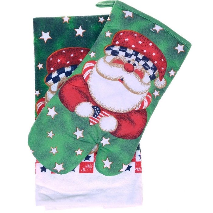Kit 2 Peças Natalino Pano de Prato Felpudo e Luva de Forno Noel -