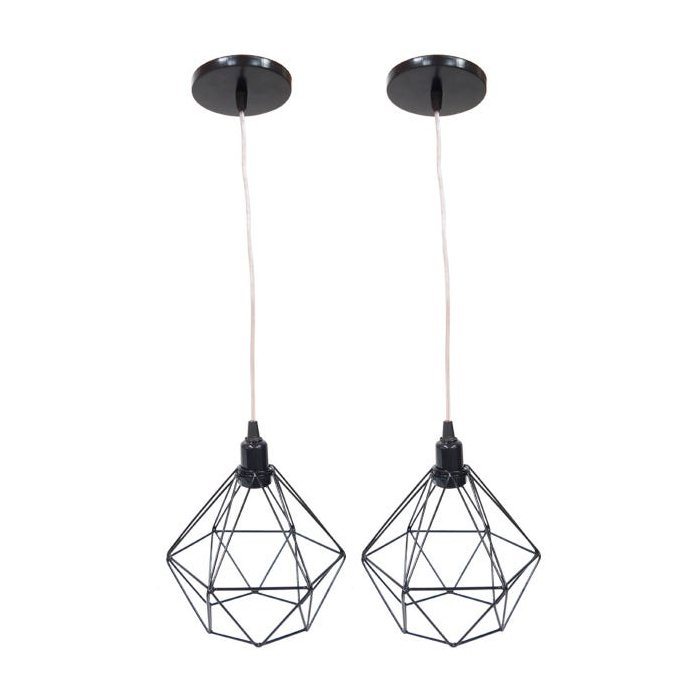 Kit 2 Pendente Aramado Diamante Luminárias Lustre Cabo Cristal Teto Retrô Preto Agp Ilumini