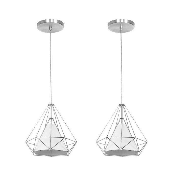Kit 2 Pendente Aramado Piramidal 25cm Cromado Cúpula Branca