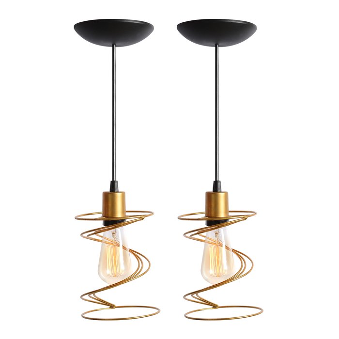 Kit 2 Pendente Aramado Poptem Mola Dourado Lustre Luminária Iluminação Sala Quarto Iluminação Interi