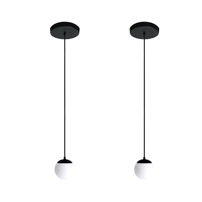 Kit 2 Pendente Redondo Esfera Preto 15cm Vidro Leitoso Bella Light Sphera