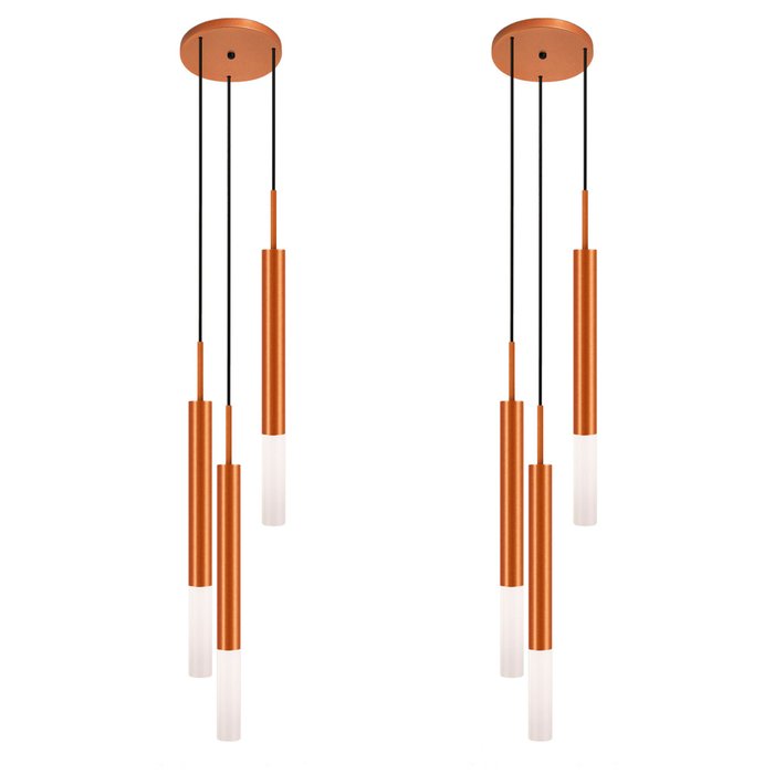 Kit 2 Pendentes Teto Luminária Tubo Triplo Difusor Cobre Cobre