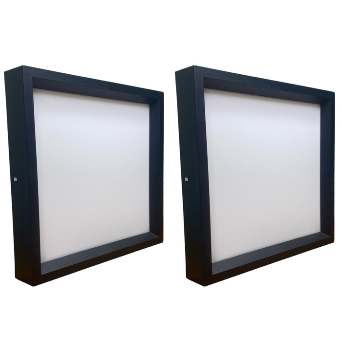 Kit 2 Plafon Luminária Painel Quadrado Recuado Sobrepor 18w - Preto - Branco Quente 3000k - 110v/220