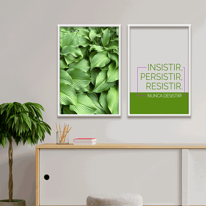 Kit 2 Plaquinhas Decorativa Adesivada Insistir, Persistir, Resistir Branco - 30x40cm