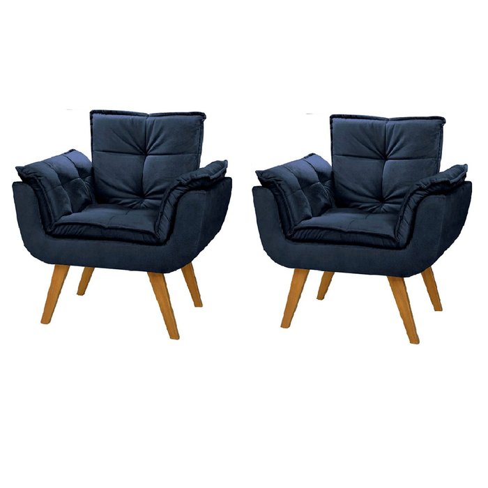 Kit 2 Poltrona Azul Marinho Cadeira Decorativa Opala Sala Recepção Pés Imbuia - Bela Decor