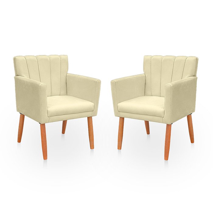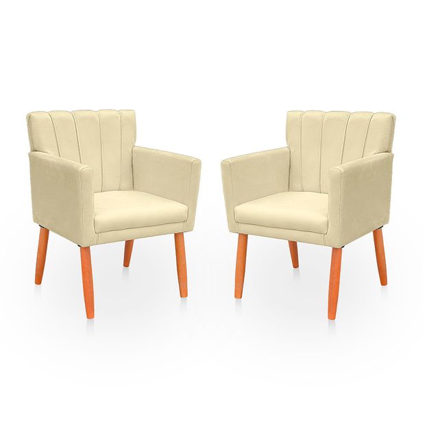 Kit 2 Poltrona Cadeira para Sala Confortável e Reforçada Carol Suede Bege