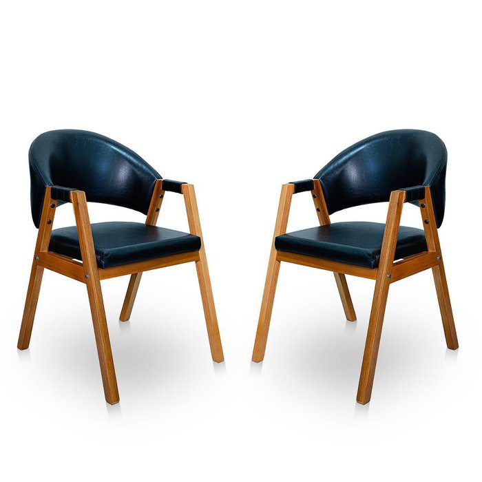 Kit 2 Poltrona Cadeira para Sala Madeira Maciça Kora Preto Courissimo