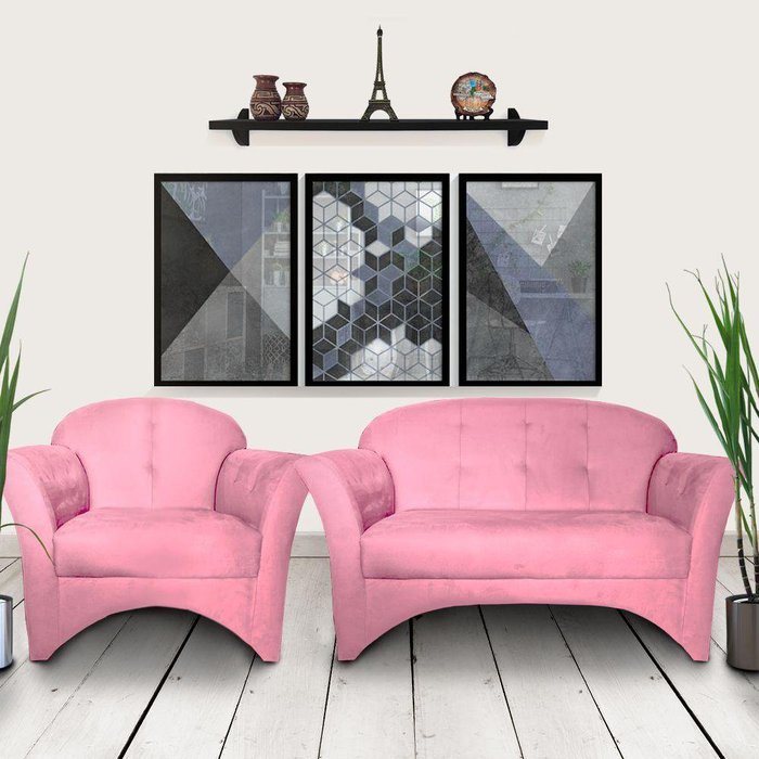 Kit 2 Poltrona Decoração + 1 Namoradeira Rosa