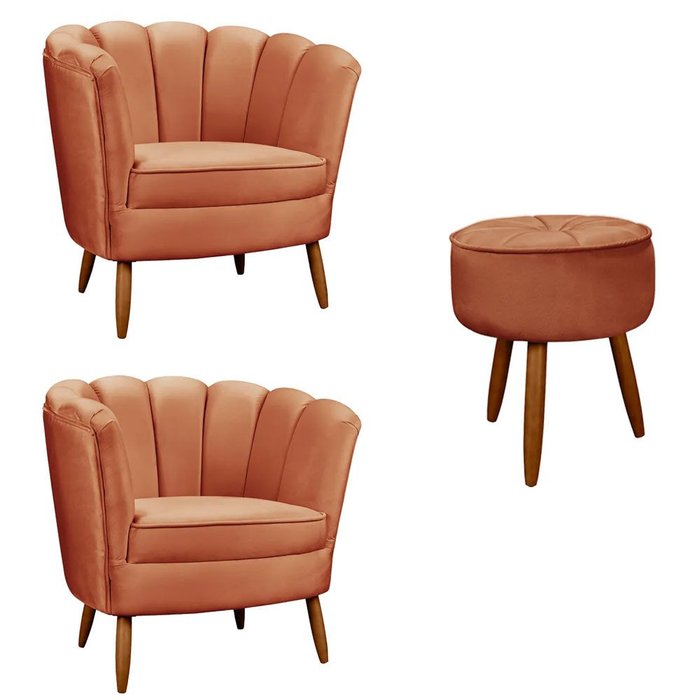 Kit 2 Poltrona Decorativa Ariel e Puff Redondo Star Confort
