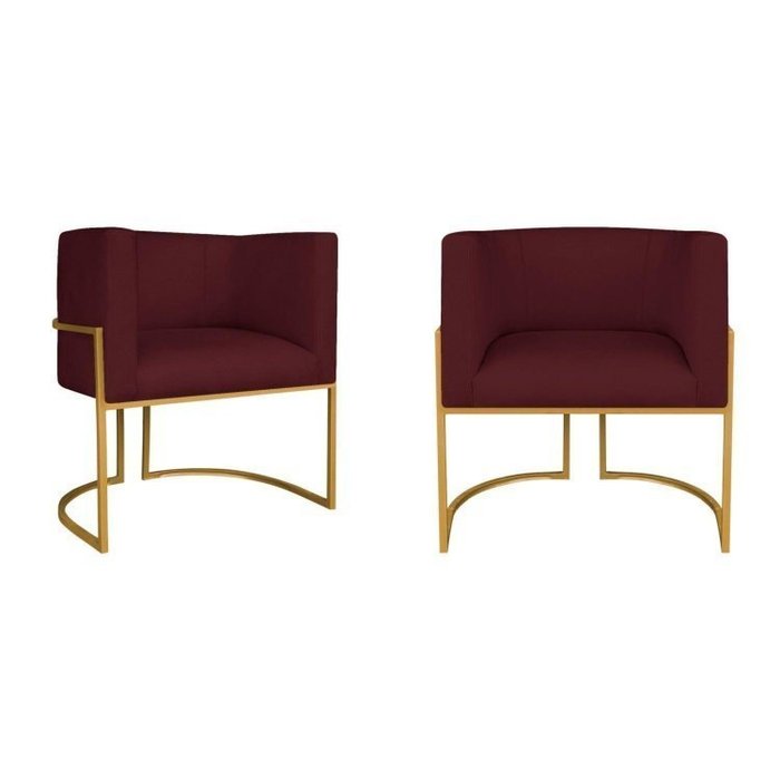 Kit 2 Poltrona Decorativa Base de Ferro Suede Munique Bordo/Dourado