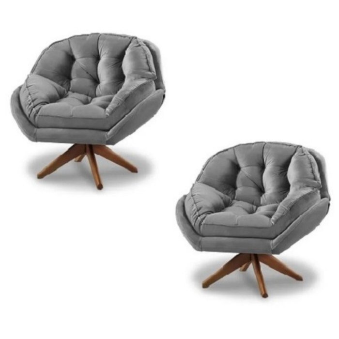 Kit 2 Poltrona Decorativa Estofada Base Giratória Califórnia Cinza
